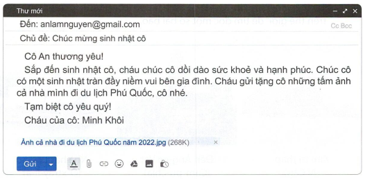- Bước 3: Bấm nút "Gửi". (Trước khi gửi hãy đọc lại nội dung thư để soát chính tả, lỗi diễn đạt; kiểm tra địa chỉ email của người nhận).