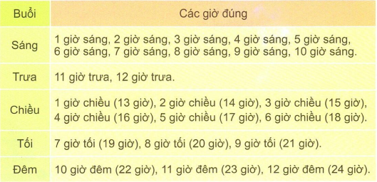 - Các buổi trong ngày: sáng, trưa, chiều, tối, đêm.