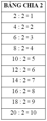 - Bảng chia 2 là bảng phép chia mà số chia luôn là 2.