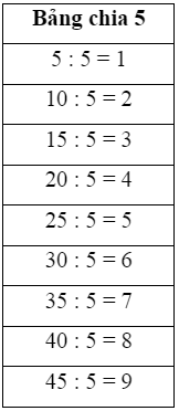 - Bảng chia 5 là bảng phép chia mà số chia luôn là 5.