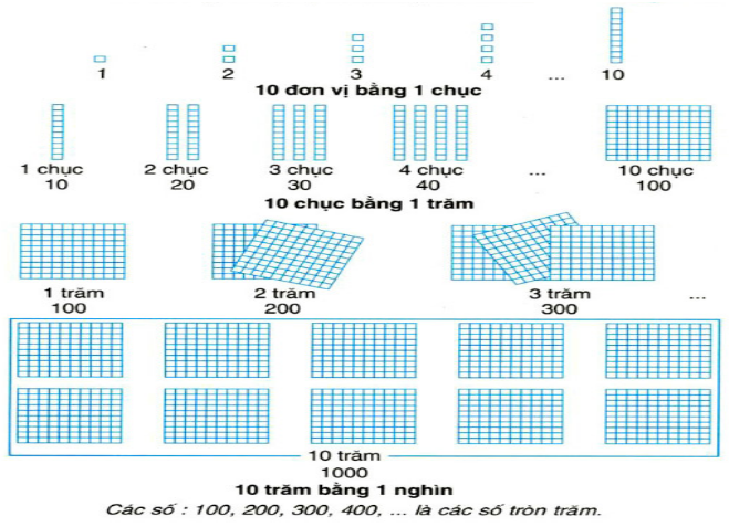 - Nhận biết và nắm được quan hệ giữa đơn vị và chục, giữa chục và trăm.