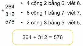 Ví dụ: 345 + 212 = (300 + 200) + (40 + 10) + (5 + 2) = 500 + 50 + 7 = 557.