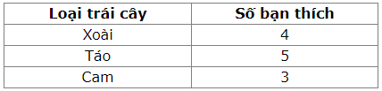 Ví dụ: "Đếm số bạn trong lớp thích các loại trái cây."