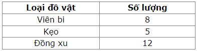 Các đồ vật nhỏ như bút chì màu, viên bi, quả bóng, hoặc thẻ hình (hình con vật, trái cây, phương tiện giao thông...).
