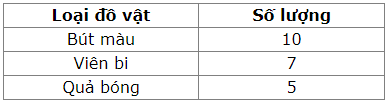 Bảng mẫu với các cột: Loại đồ vật, Số lượng.