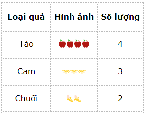 Ví dụ: "🍎🍎🍎 biểu thị 3 quả táo."