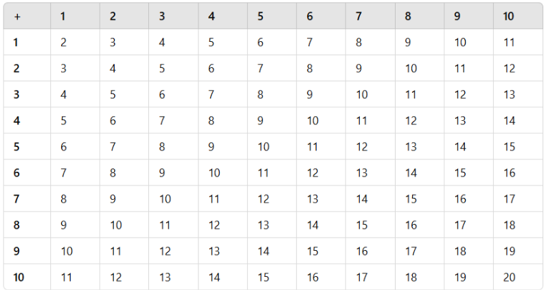 1.2.1. Phép cộng qua 10 trong phạm vi 20: