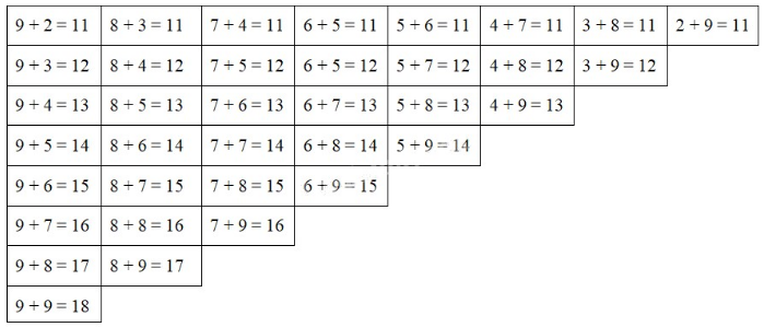 + Nắm vững bảng cộng qua 10 (ví dụ: 9 + 2, 8 + 3, 7 + 4...).