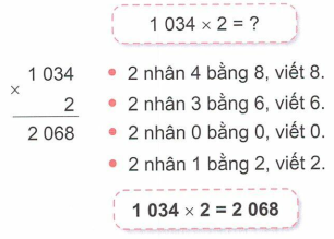 - Nhân lần lượt số ở hàng đơn vị của số có bốn chữ số với số có một chữ số, viết kết quả. Nếu có nhớ thì nhớ sang hàng chục.