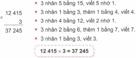 - Thực hiện phép nhân: Bắt đầu nhân từ phải sang trái, lần lượt nhân số có 1 chữ số với từng chữ số của số có 5 chữ số.