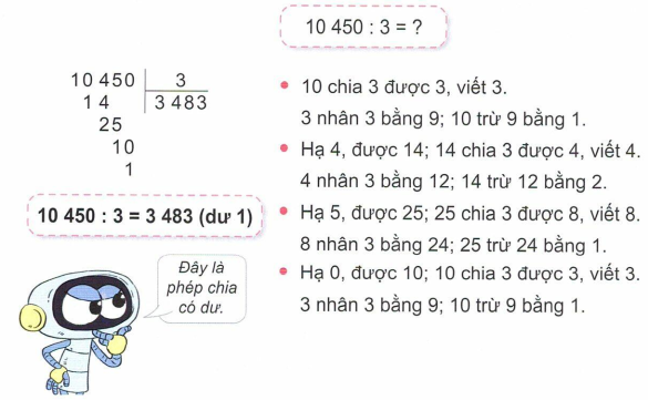 b. Ví dụ chia có dư: 10 450 : 3 = ?
