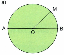 - Hình tròn tâm O, bán kính OM, đường kính AB.