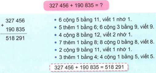 1.2.1. Phép cộng các số có nhiều chữ số: