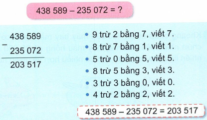 + Trừ lần lượt từ phải sang trái (từ hàng đơn vị đến hàng chục, hàng trăm,...).