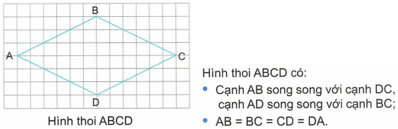 - Mô tả được đặc điểm về cạnh của hình bình hành, hình thoi.
