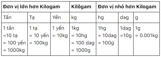 - Để đo khối lượng các vật nặng hàng chục, hàng trăm, hàng nghìn ki-lo-gam, người ta còn dùng những đơn vị: yến, tạ, tấn