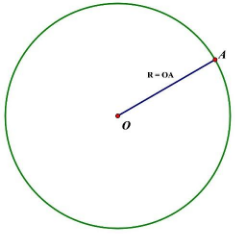 + Đường tròn tâm O, bán kính R là hình bao gồm tất cả các điểm cách tâm O một khoảng bằng bán kính R. Bất kỳ điểm nào nằm trên đường tròn và nối trực tiếp với tâm O đều được gọi là bán kính.