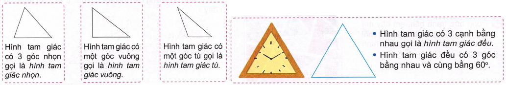 - Phân biệt 4 dạng hình tam giác theo góc, cạnh; nhận biết đáy và đường cao.