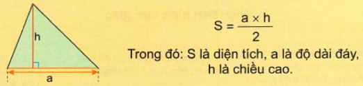 - Quy tắc: Muốn tính diện tích hình tam giác ta lấy độ dài đáy nhân với chiều cao (cùng một đơn vị đo) rồi chia cho 2.