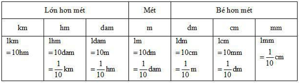 - Đơn vị lớn gấp 10 lần đơn vị bé hơn tiếp liền;
