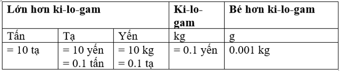 Nhận xét: Trong bảng đơn vị đo khối lượng: