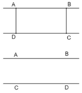 Kéo dài hai cạnh AB và DC của hình chữ nhật ABCD ta được hai đường thẳng song song với nhau. Hai đường thẳng song song không bao giờ cắt nhau
