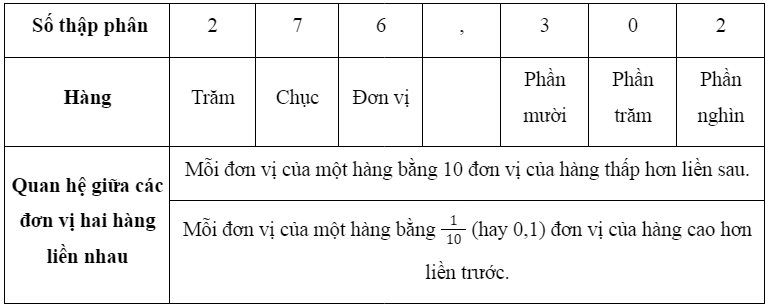 1.2.2. Hàng của số thập phân:
