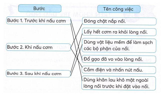 b. Việc sử dụng nồi cơm điện chia làm 3 bước.