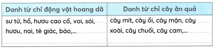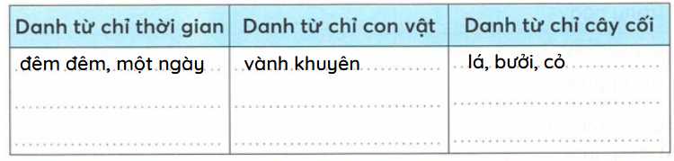 Tìm trong đoạn văn ở bài tập 1 (SHS Tiếng Việt 4, tập một, trang 24-25) những danh từ phù hợp với nhóm.